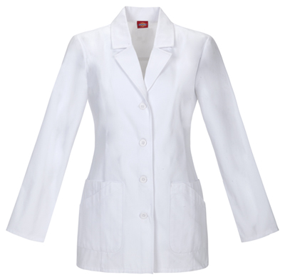 A Modern Classic fit 29" lab coat features a notched lapel, princess seams
