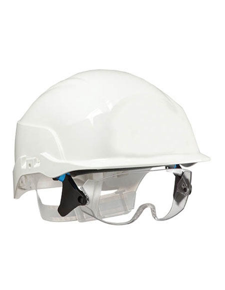 One of our pioneering head protection systems – with integrated over spectacles to deliver grade B medium energy EN 166 impact protection. Suitable for wearers of prescription eyewear.