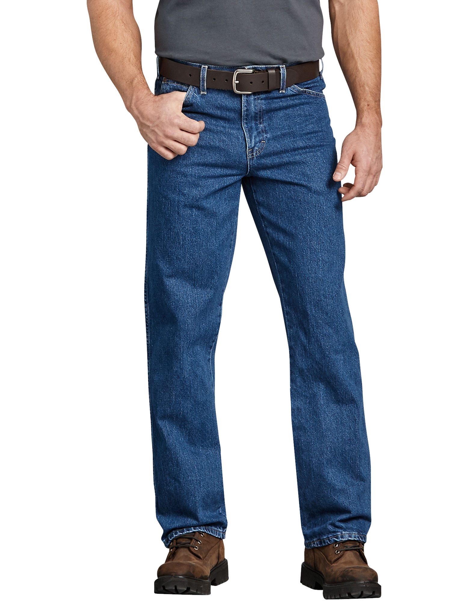 This classic 5-pocket jean is and always has been a favorite of Dickies customers. True to the original, it still sits slightly below the waist with a traditional fit through seat and thigh. Straight leg styling fits over boots. Heavyweight denim wears for years. A great buy any way you wear them.