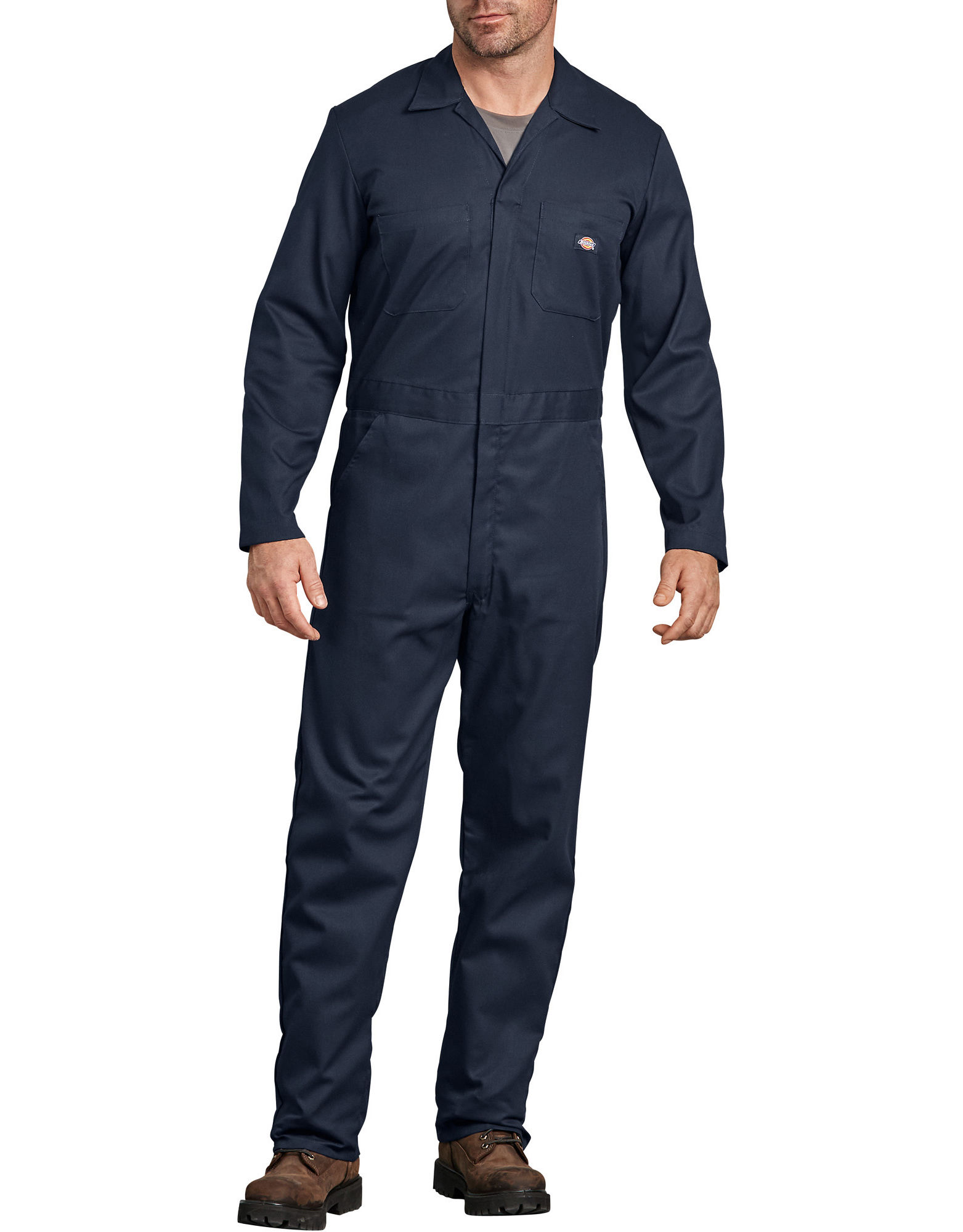 Our best-selling lightweight coverall has a roomy fit for comfort and easier movement. Durable yet breathable, poly/cotton poplin fabric is treated with a stain release finish to prevent staining. Heavy-duty nylon two-way front zipper has concealed snaps at waist and neck. Great coverage for greasy, grimy, dirty jobs; extended sizes available.