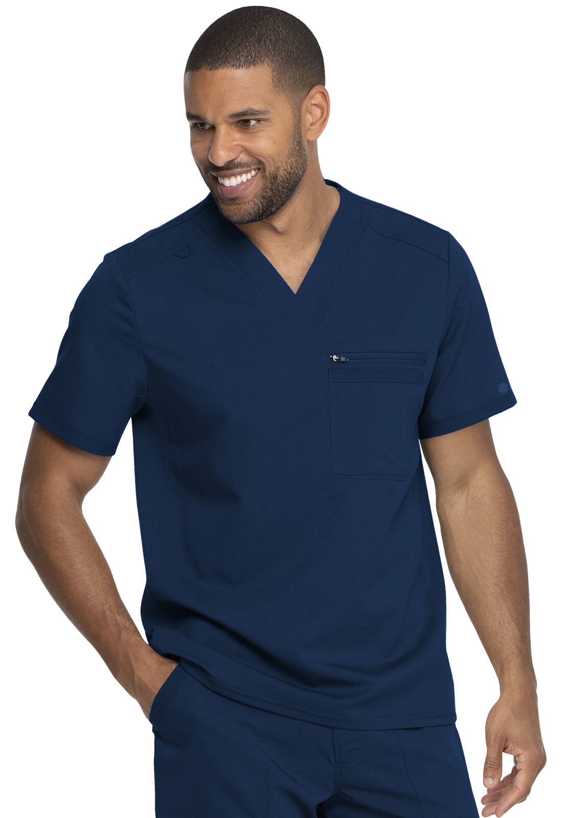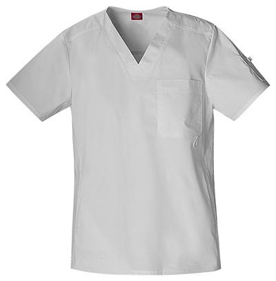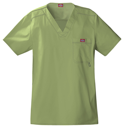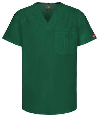 Look the part of a medical professional with Dickies Mens Dynamix V-Neck Scrub Top. Designed with a V-neck and knit collar, its comfortable all shift. The bungee loop, half-welt chest pocket, zip-closure sleeve pocket and back panels provide both movement and functionality.