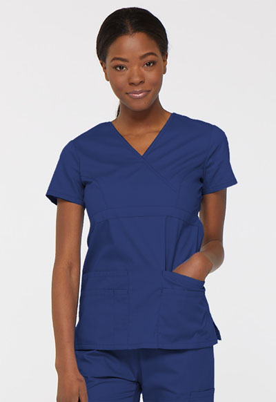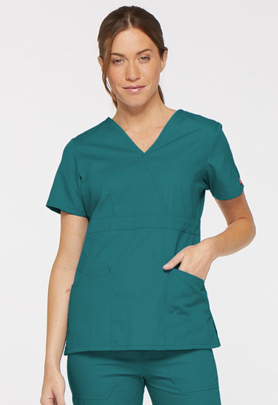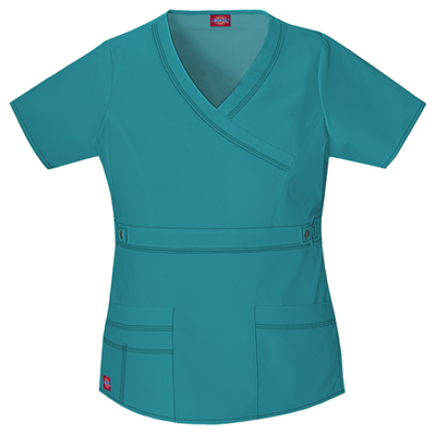A Contemporary fit, empire waist, mock wrap top features Dickies logo twill tape at the back neck and an instrument loop on the left pocket. Also featured are multiple patch pockets with a pencil slot, front princess seams and side vents. Center back length: 26"