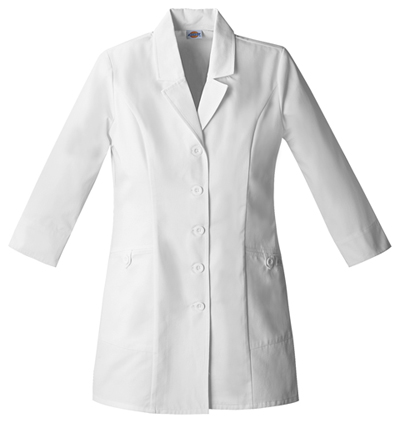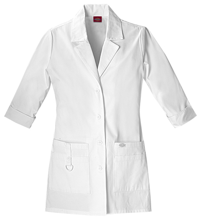 A Modern Classic fit 31" lab coat features a notched lapel, princess seams and pockets with button tabs for extra security. 3/4 length sleeves can be worn with cuffs flipped up or down. A back yoke, princess seams and a back belt complete this coat.