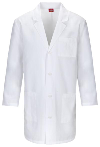 Men’s Fit Consultation lab coat features a notched lapel and a three button closure. Also featured are a chest pocket, one inside chest pocket, two patch pockets and a back kick pleat. Center back length: 31".