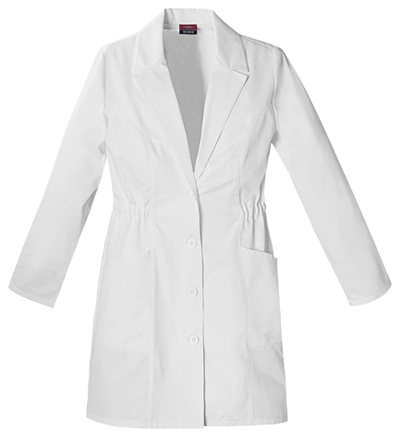A Modern Classic fit 29" lab coat features a notched lapel, princess seams and front button closure. Also featured two patch angled pockets and two pockets with a pleated detail look. Back yoke, princess seams, and an adjustable back belt with buttons complete this coat.