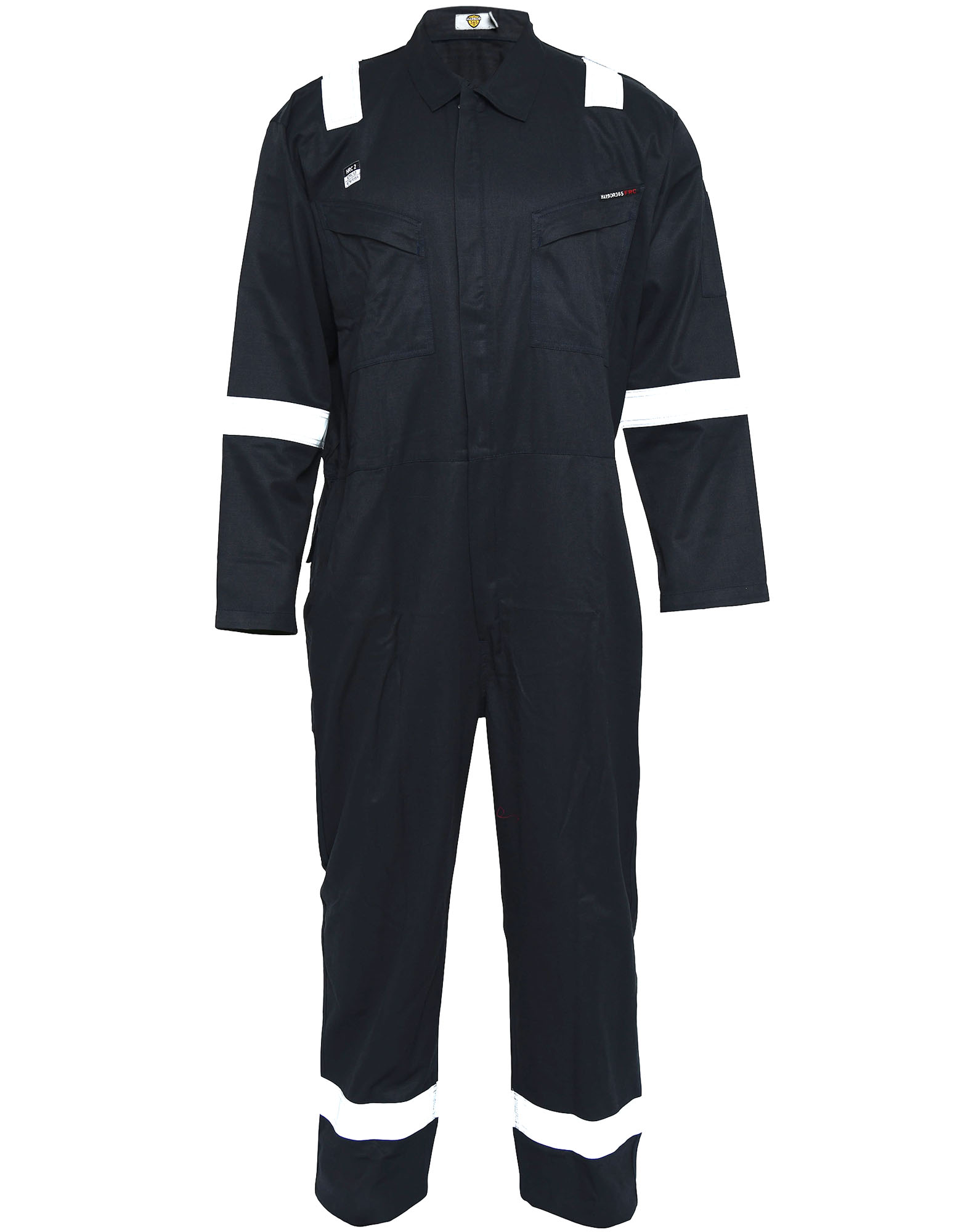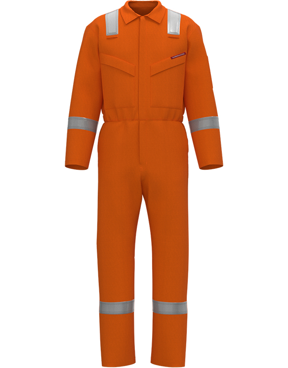 These lightweight flame retardant overalls offer maximum protection against heat and flame with its cotton being Pyrovatex® FR treated. Additionally the garment features flame retardant reflective tape across the shoulders, arms & legs and an extended collar area for throat/neck protection. There are side access pockets, which will allow entry to garments worn beneath this coverall and additionally there are two back pockets and a rule pocket.