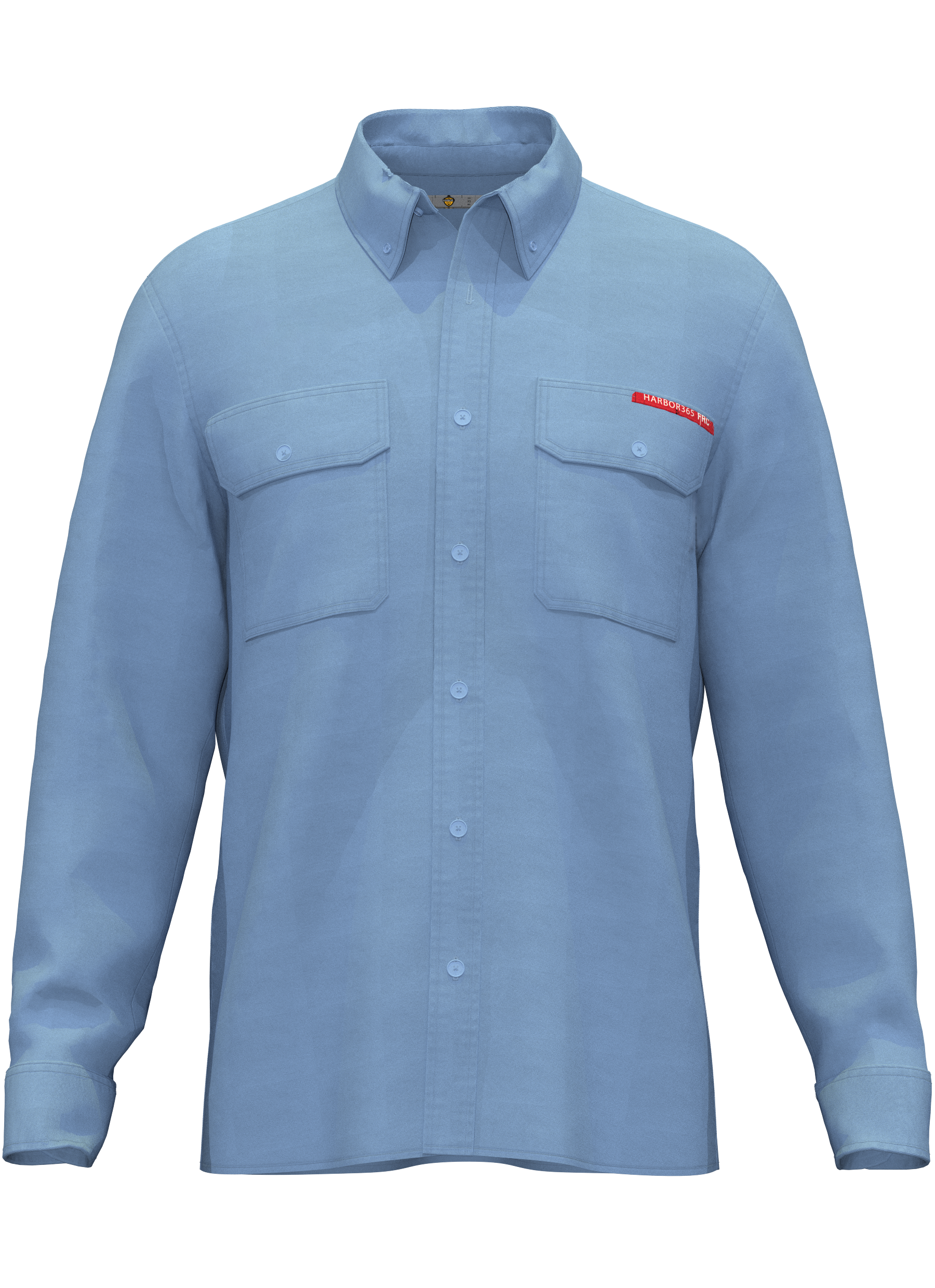 Button-down banded color, Two chest pockets with button, down flaps, Metal detector loop, Tool pocket on left arm, Placket cuffs with button closure, Adjustable cuff with button closure, Pencil division on left chest pocket, Action back design for ease of movement, Back neck label