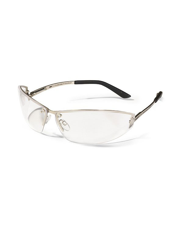 Safety spectacles... The EXPERT spectacles are made with a very attractive polished sliver metal frame, whit soft fl exible temples which provide a perfect resistance to alterations. Its fl at comfortable temples fi t perfectly under a helmet or ear defenders.